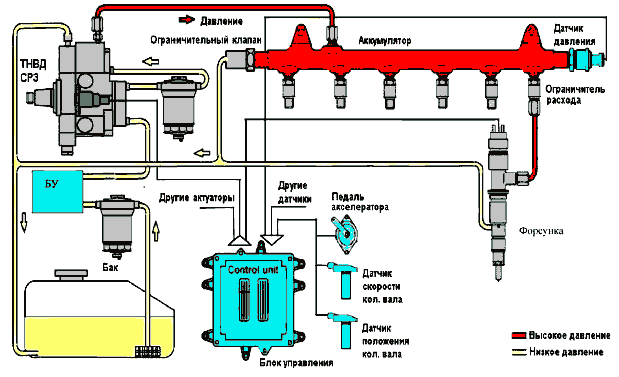 Основные узлы топливной системы Common Rail