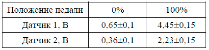3. Замерить напряжение на датчиках положения педали акселератора. Рабочие напряжения приведены в таблице
