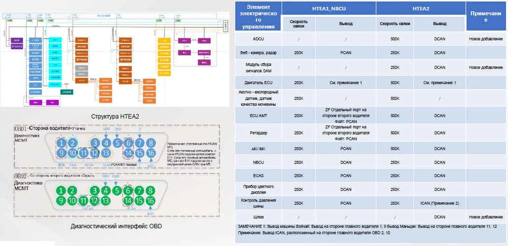 HTEA2 (PCAN -500K) VI + NBCU + прибор цветного дисплея+шлюз+SAM+модуль переднего и заднего прицепа