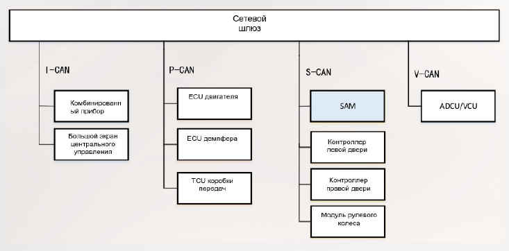 • Переключатель передач КС подключен к SAM, и SAM также реагирует на информацию о передаче, отправленную VCU/ADCU, и передает ее на коробку передач.