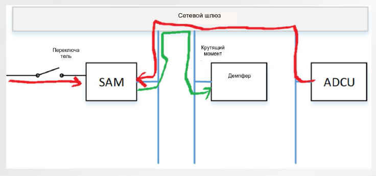• Переключатель передач КС подключен к SAM, а SAM отправляется на коробку передач