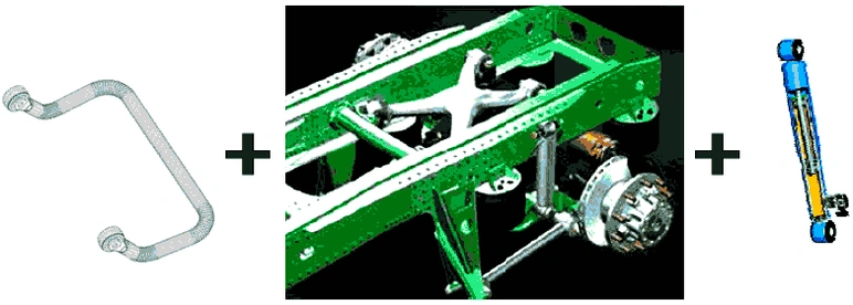 Включает стабилизаторы, усиленные амортизаторы и крестообразные рычаги подвески, используемые в шасси автомобилей.