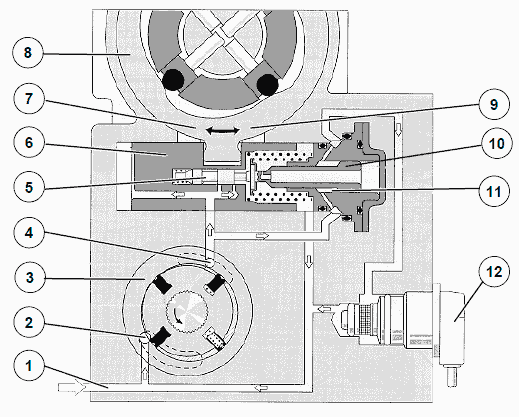 Для настройки заданной частоты вращения на холостом ходу регулятор холостого хода варьирует объем впрыска до тех пор, пока замеренная фактическая частота вращения не будет соответствовать заданной частоте вращения.