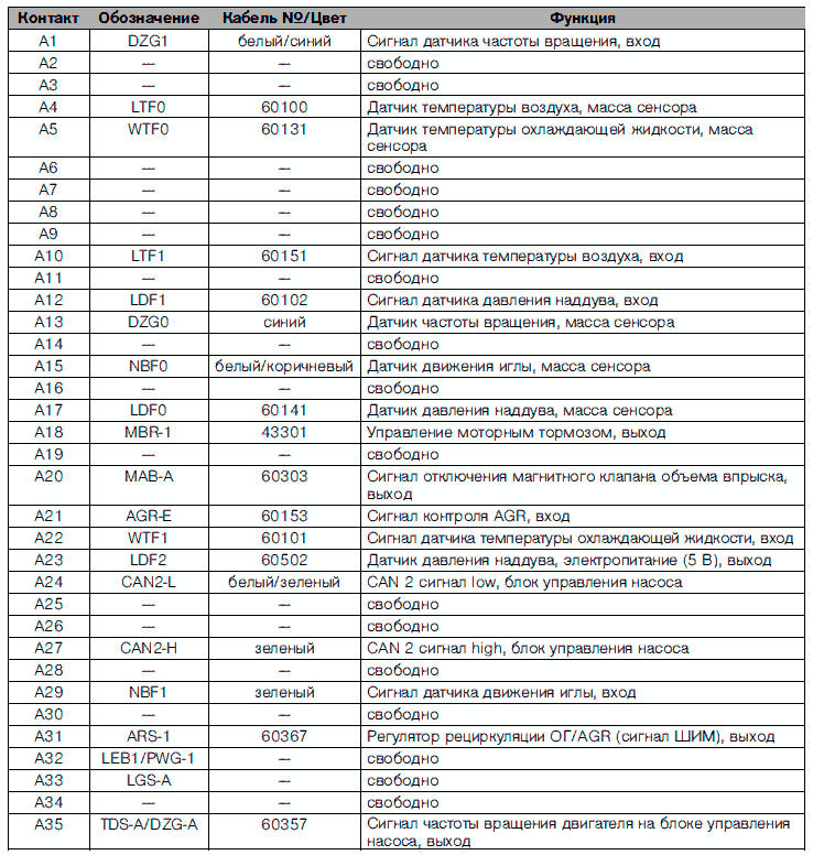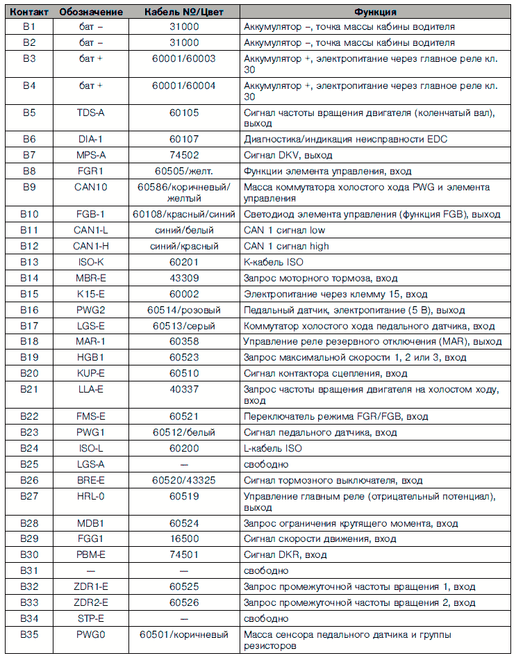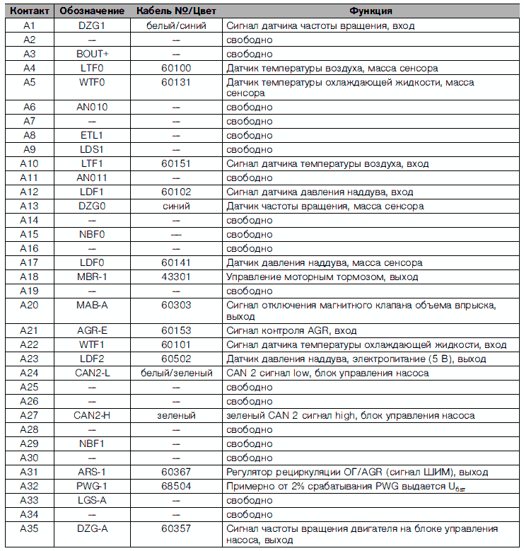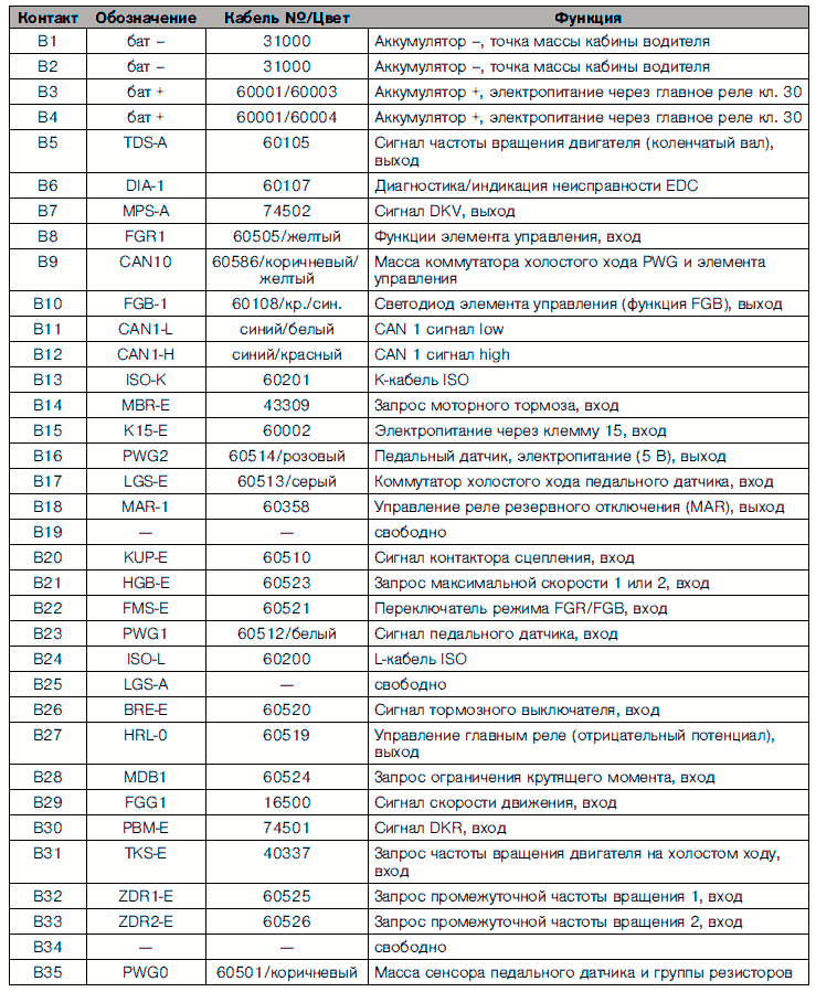 Разводка контактов блока управления двигателя EDC 6.4 ступень 1
