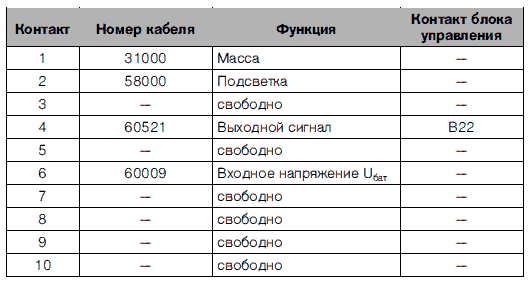 Штекер B / Функции автомобиля