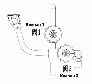 Заполнение обратного газа: При наполнении сначала закрыть клапан 1 и клапан 2, заполнить баллон 1 (нижний), после заполнения