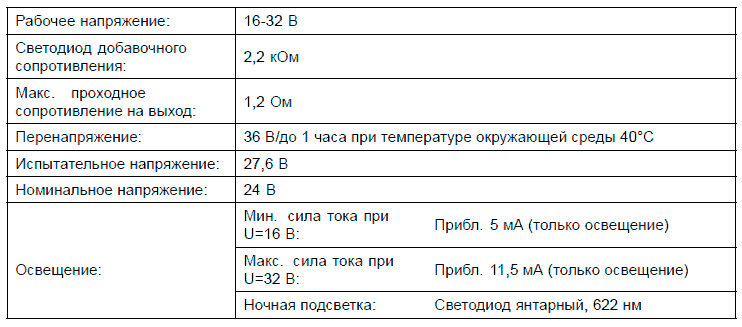 Технические характеристики, таблица значений