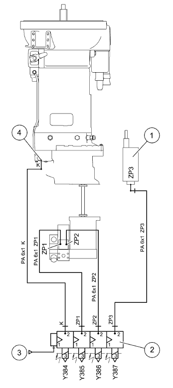 (22) Клапан питательного насоса (Y387) (давление питания ZP3)