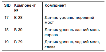 Переопределенные функции пульта управления описаны более подробно в нижеприведенной таблице. Автомобили оснащаются только одним электронным клапаном и одним датчиком уровня в передней части.