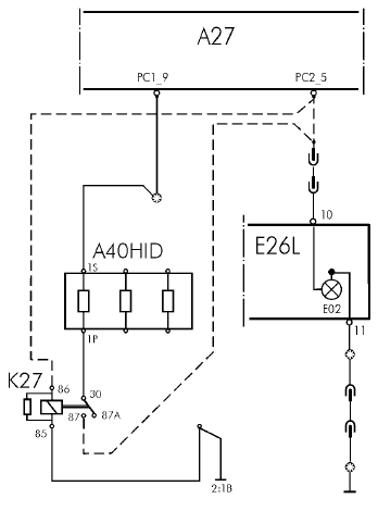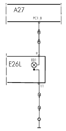 Деталь: лампа, дальний свет (E01), блок управления LCM, (наружный свет) (A27).