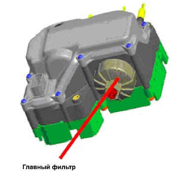 температуры жидкости; подогрев осуществляется с использованием охлаждающей жидкости автомобильного двигателя и имеет своей целью – не допустить замерзания раствора мочевины в баке. Вентиляционный клапан обеспечивает баланс давления внутри бака и – окружающей его атмосферы. Бак оснащен фильтром грубой очистки, который защищает систему впрыска от попадания частиц размером больше 0.1мм.