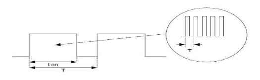 Контроль за расходом раствора мочевины осуществляется через дозирующий клапан: поток можно регулировать, изменяя рабочие интервалы клапана Рисунок ниже наглядно иллюстрирует принцип работы системы. Через «t on» на рисунке обозначен интервал работы клапана (клапан открыт), в то время как “T” – его полный операционный цикл. Система DeNOx 2.2 осуществляет контроль впрыска мочевины, изменяя рабочий интервал дозирующего клапана, и регулирует поток раствора мочевины – поддерживая
