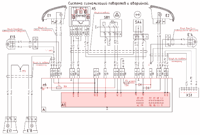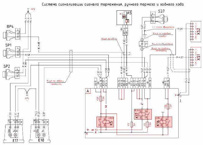 - Система сигнализации торможения, ручного тормоза и заднего хода