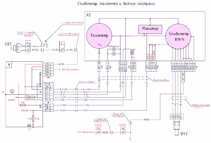 - Система цифрового тахографа, тахометр и датчик нейтрали