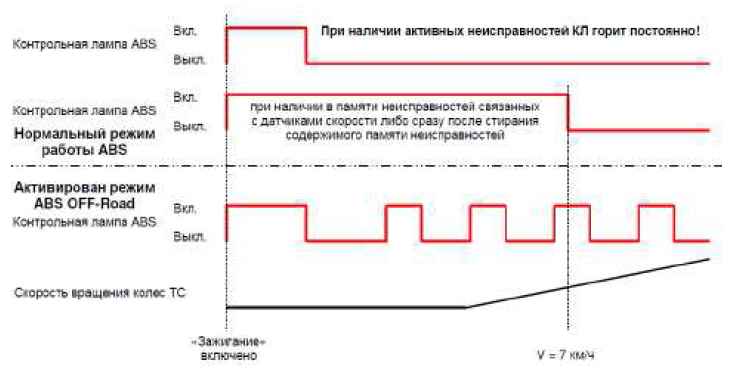 Обрывы цепи или короткие замыкания, в отсутствие ABS регулирования, идентифицируются в течение 10 секунд и ведут к отключению каналов управления соответствующих колес.