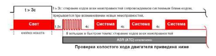 1. При помощи двух дополнительных замыканий на массу продолжительностью более 0,5 секунд может быть проверена функция ASR(ATC) управления двигателем (в этом случае ASR заставляет двигатель работать на холостом ходу в течение 10 секунд).
