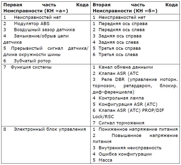 Коды неисправностей соответствуют стандарту SAE J1587, определяющему следующее: