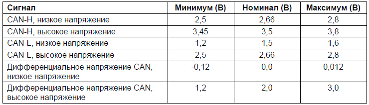 УРОВНИ НАПРЯЖЕНИЯ СИГНАЛА CAN В СООТВЕТСТВИИ С ISO 11898