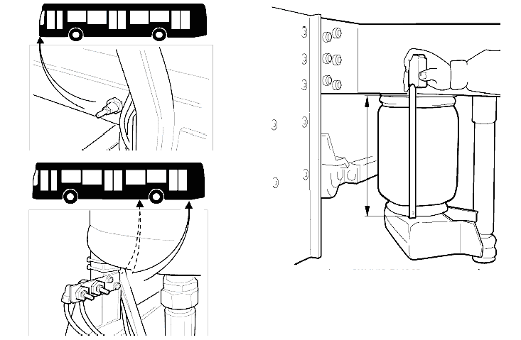 • Для приведения подвески автобуса к транспортному уровню клавишу Kneeling (опускание на остановке) надо установить в верхнее положение, или удерживать клавишу изменения уровня (вверх или вниз) до тех пор, пока не погаснет контрольная лампа уровня подвески.