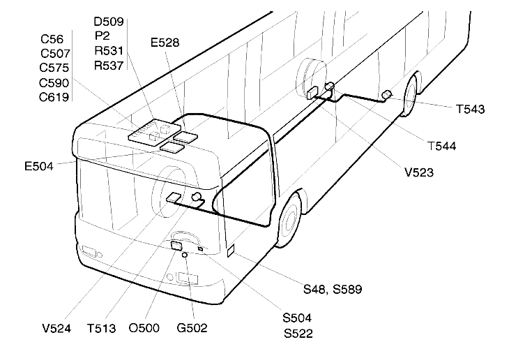 Опускание автобуса на остановке (Kneeling) происходит при нажатии нижней части выключателя S504 (опускание происходит, пока нажата клавиша, уровень фиксируется при отпускании, если выключатель нажать повторно, опускание продолжится.