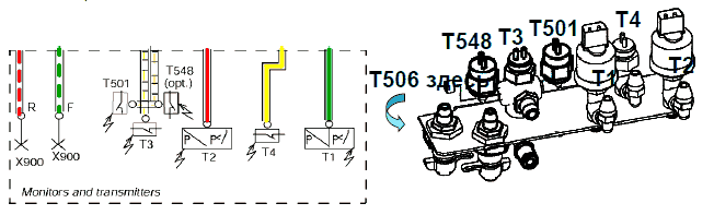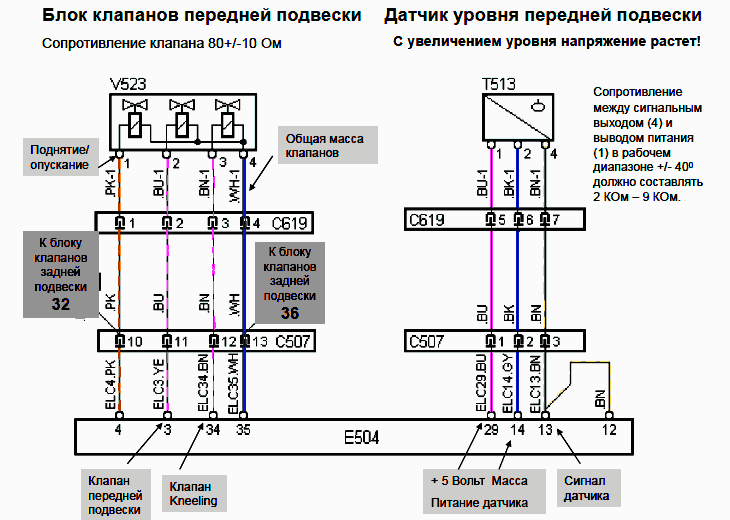 Датчик давления Т4 в пневмосистеме предотвращает опускание уровня подвески и функцию Kneeling при падении давления в ресивере ниже 5 атм. Поднимание уровня подвески при этом возможно.