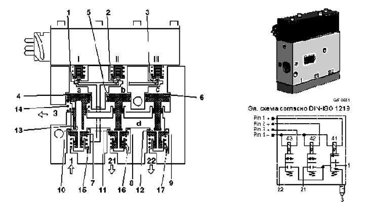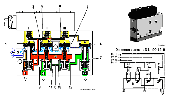 • В блоке клапанов передней оси V524 находятся 4 клапана (четвертый клапан используется для функции kneeling).