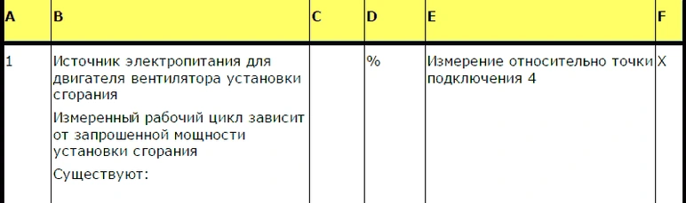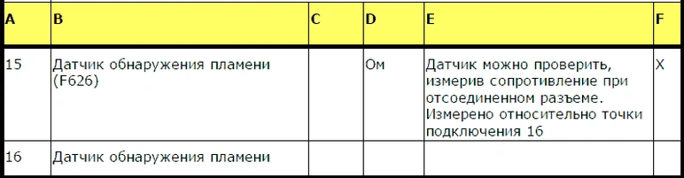 - F Работа датчика воспламенения
