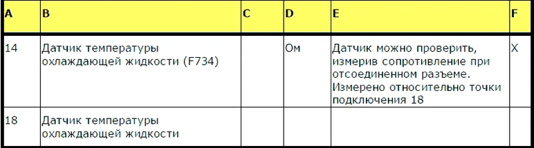 Датчик температуры охлаждающей жидкости (F734)
