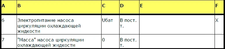 - G Работа насоса для циркуляции охлаждающей жидкости
