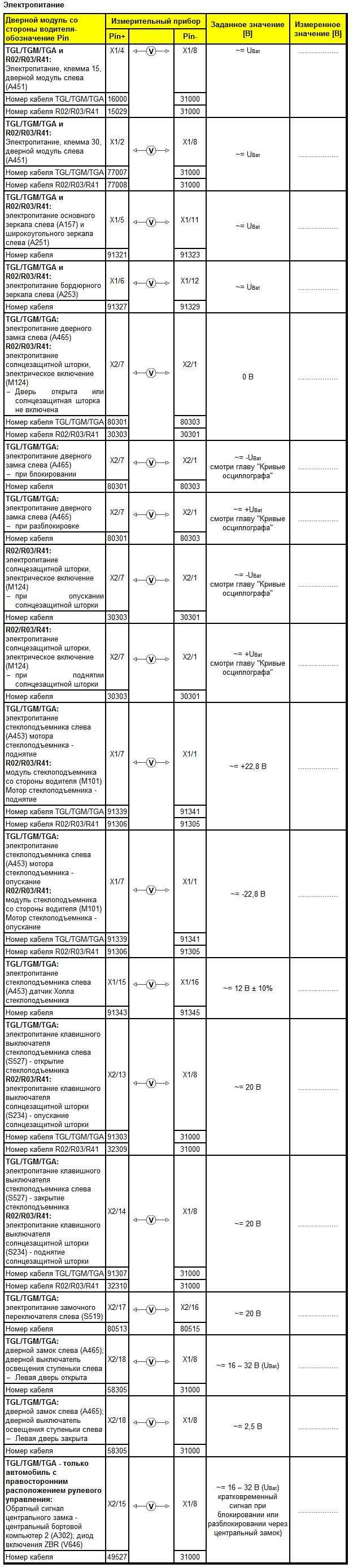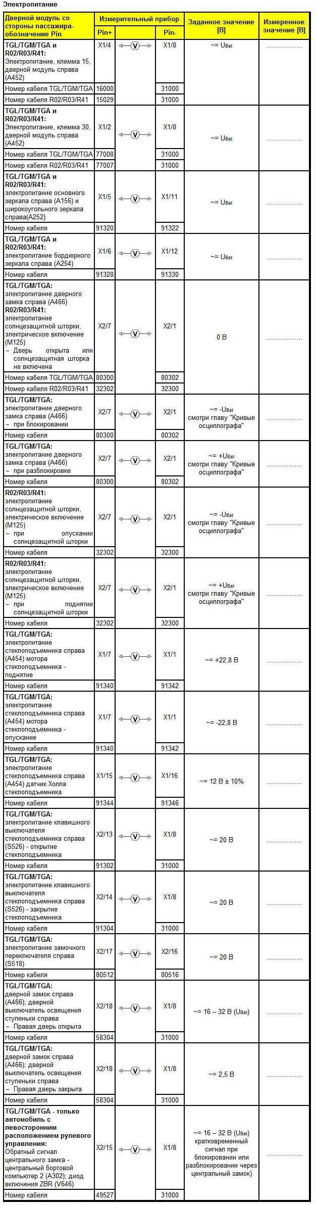 Приведенный в дальнейшем контрольный перечень применяется для TGL/TGM/TGA и автобуса R02/R03/R41.