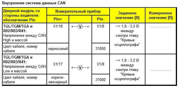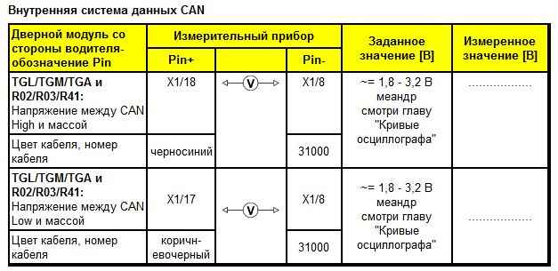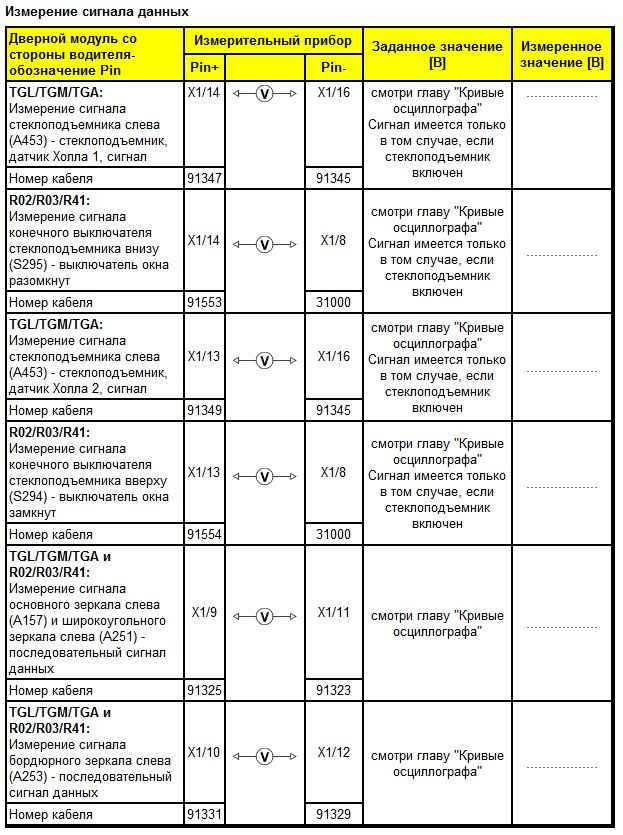 Контрольный перечень этапов проверки модуля двери MAN TGA