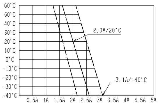 Номинальный ток при 20°C при испытательном напряжении 28 В: IN = 2 -0,3 +0,55 A