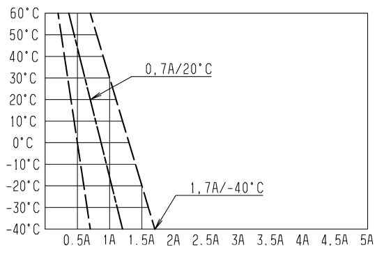 Номинальный ток при 20°C при испытательном напряжении 28 В: IN = 0,7 ±0,2 A