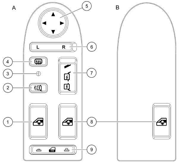 2 Клавишный выключатель для 2-й установки основного зеркала: Сторона пассажира