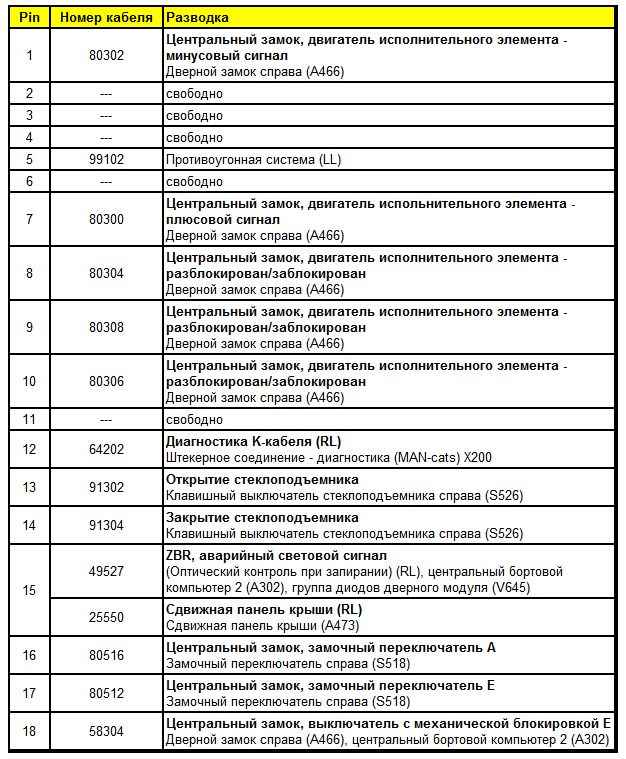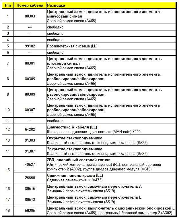 Штекерная разводка контактов дверного модуля со стороны водителя (A451)
