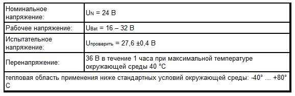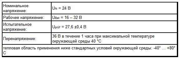 Рабочее напряжение: UBat = 16 – 32 В