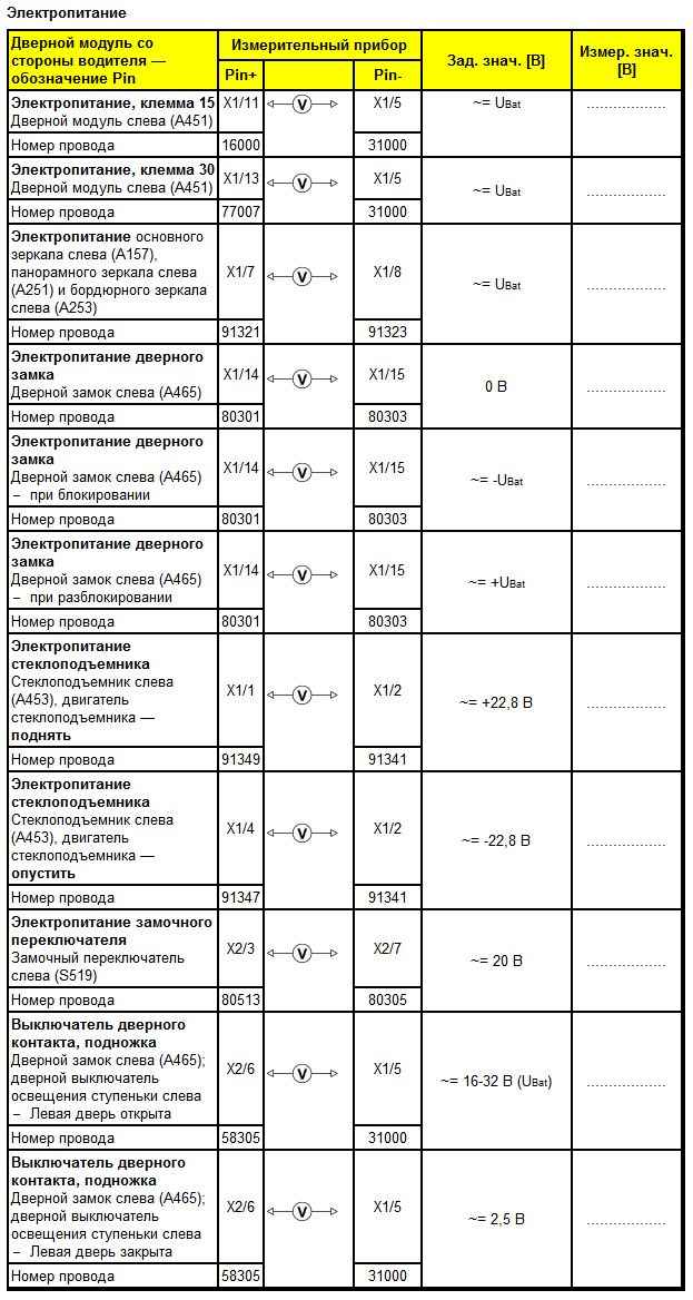 Список этапов проверки для дверного модуля со стороны водителя