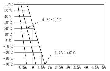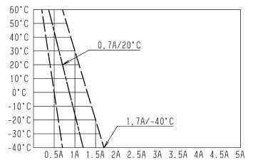 Номинальный ток при 20°C при испытательном напряжении 28 В: IN = 1 ± 0,3 А