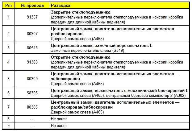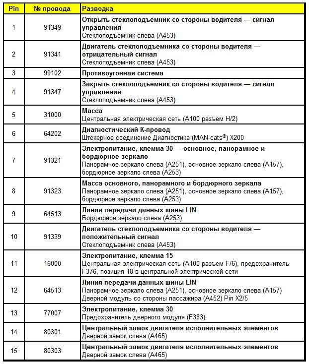Штекерная разводка контактов дверного модуля со стороны водителя (A451)