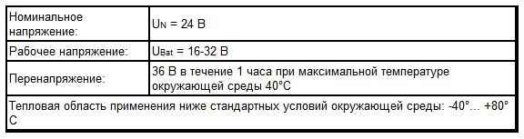 Рабочее напряжение: UBat = 16-32 В