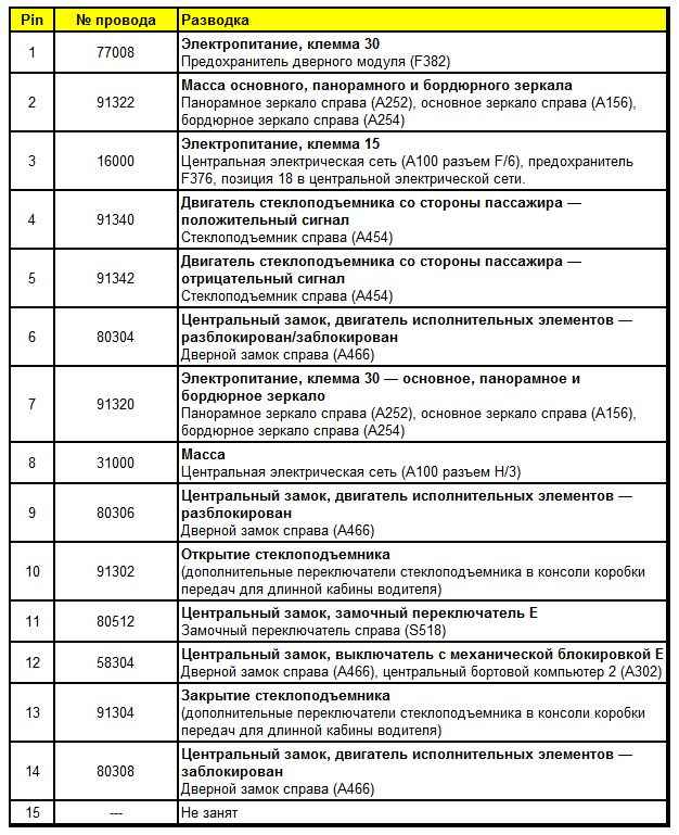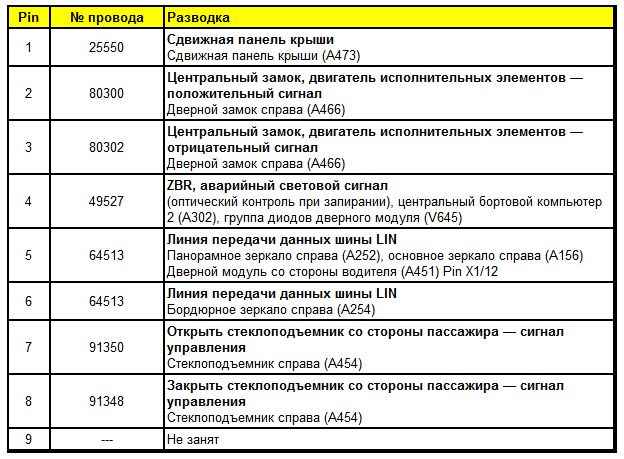 Штекерная разводка контактов дверного модуля со стороны пассажира (A452)