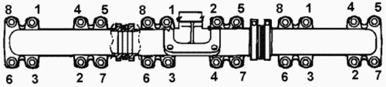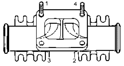 Этап 2(Болты 1, 4, 2, 3) 45(Nm)