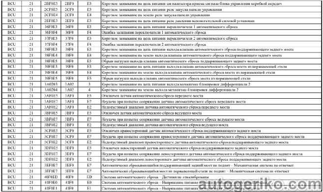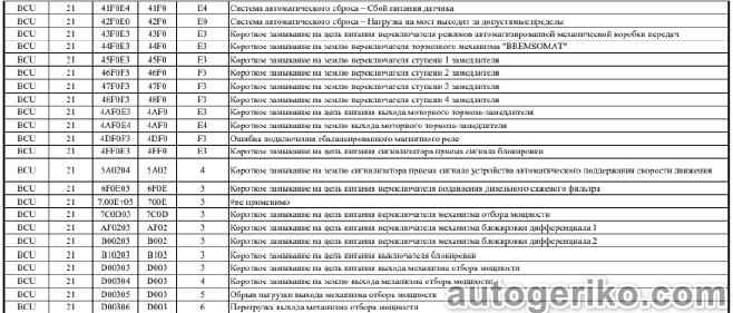 Описание кодов неисправностей системы BCU FORD CARGO