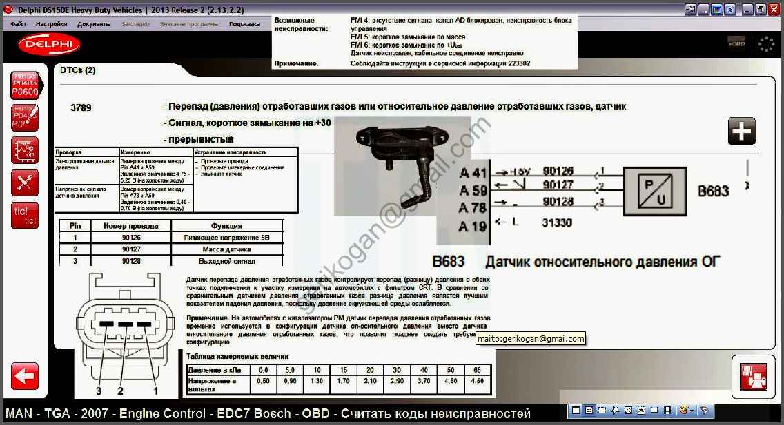 ДАТЧИК РАЗНОСТИ ИЛИ ОТНОСИТЕЛЬНОГО ДАВЛЕНИЯ ОТРАБОТАВШИХ ГАЗОВ