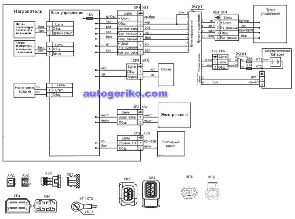 Электрическая схема подключения подогревателя.