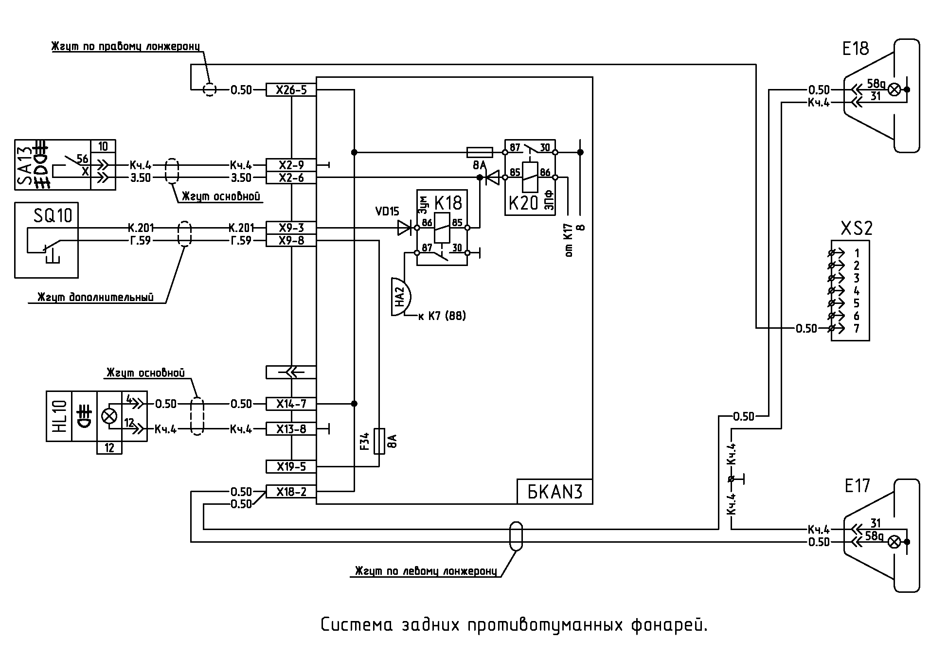 - K20 Задних противотуманных фонарей (ЗПр.)