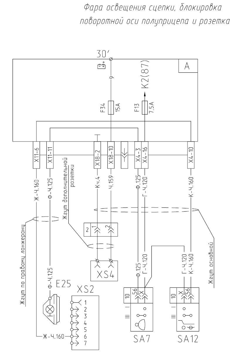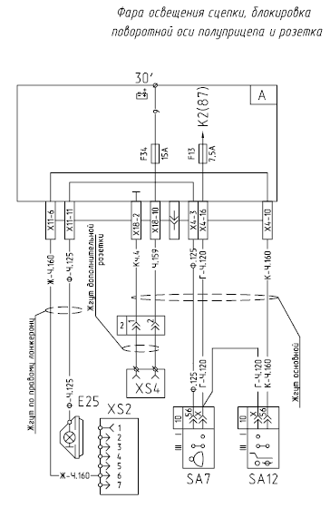 Фара освещения сцепки, блокировка поворотной оси полуприцепа и розетка