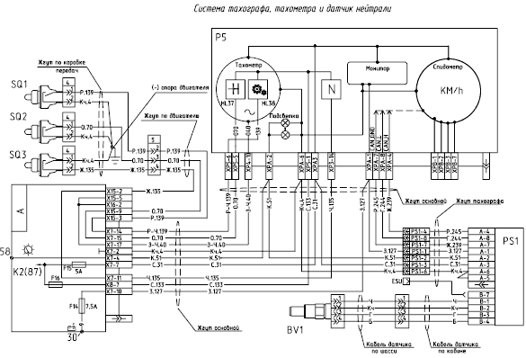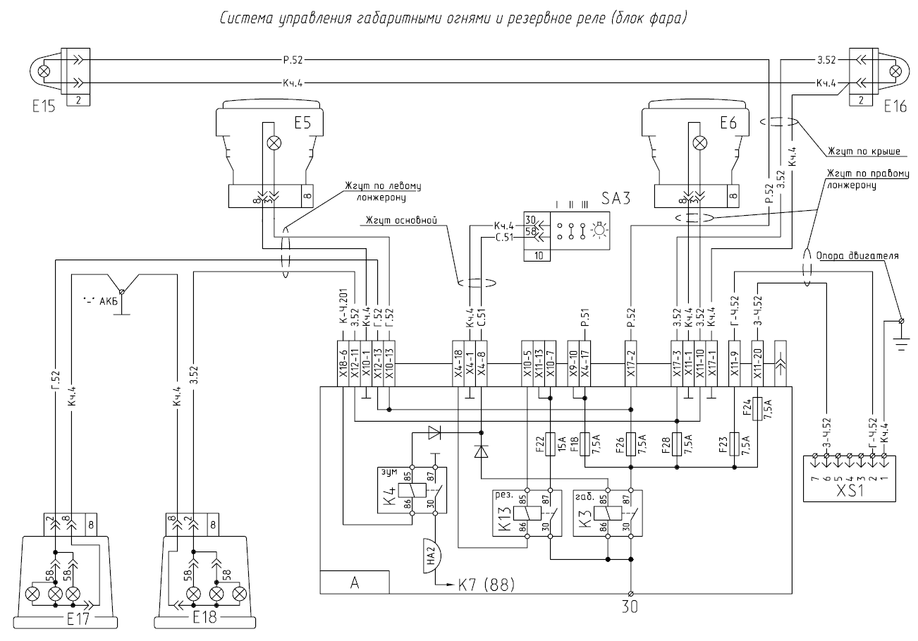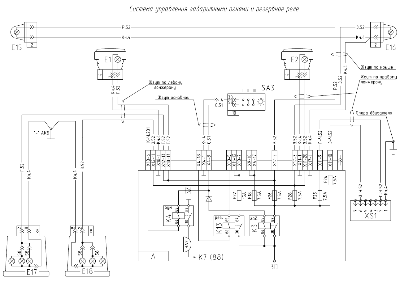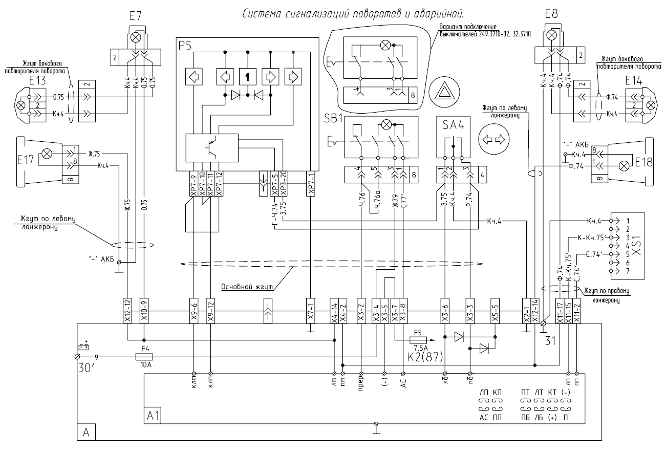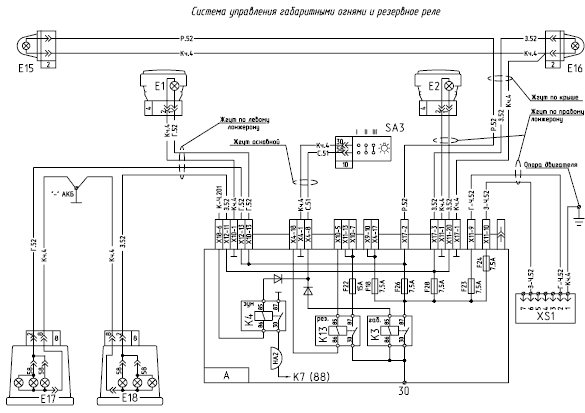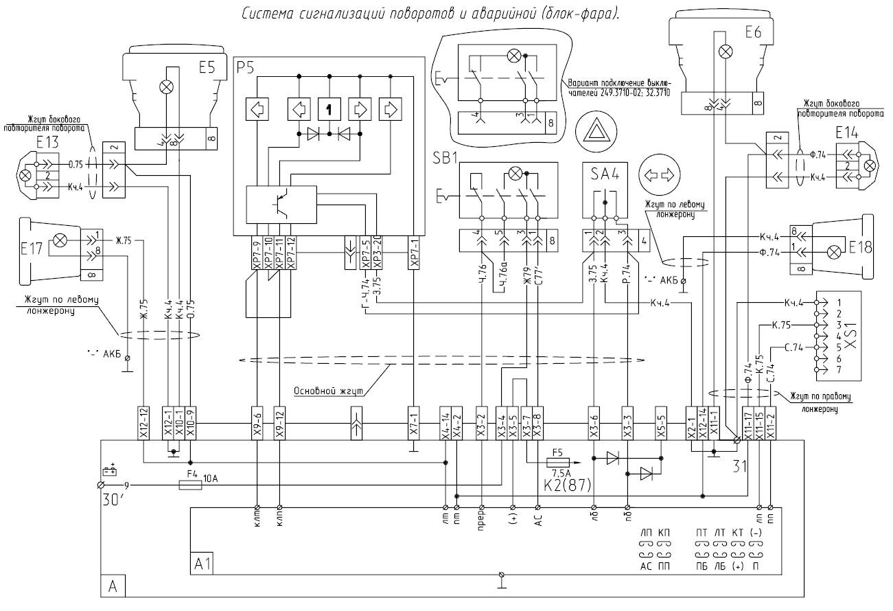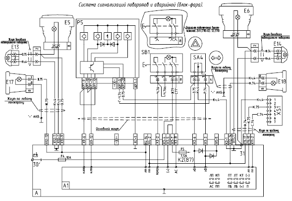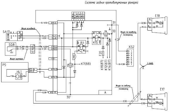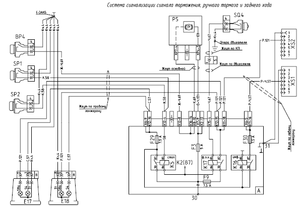 Система сигнализации сигнала торможения, ручного тормоза и заднего хода