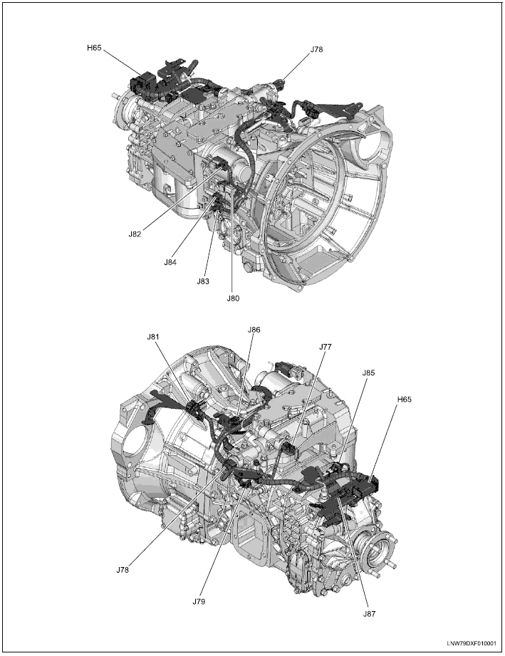 - J87 Выключатель электромагнитного клапана механизма отбора мощности (роботизированная коробка передач)