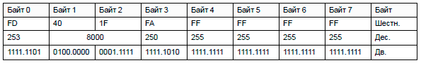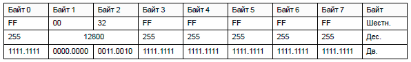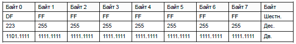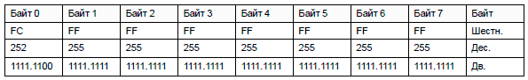 Байты 4-7 не поддерживаются и должны быть заполнены значением 1.